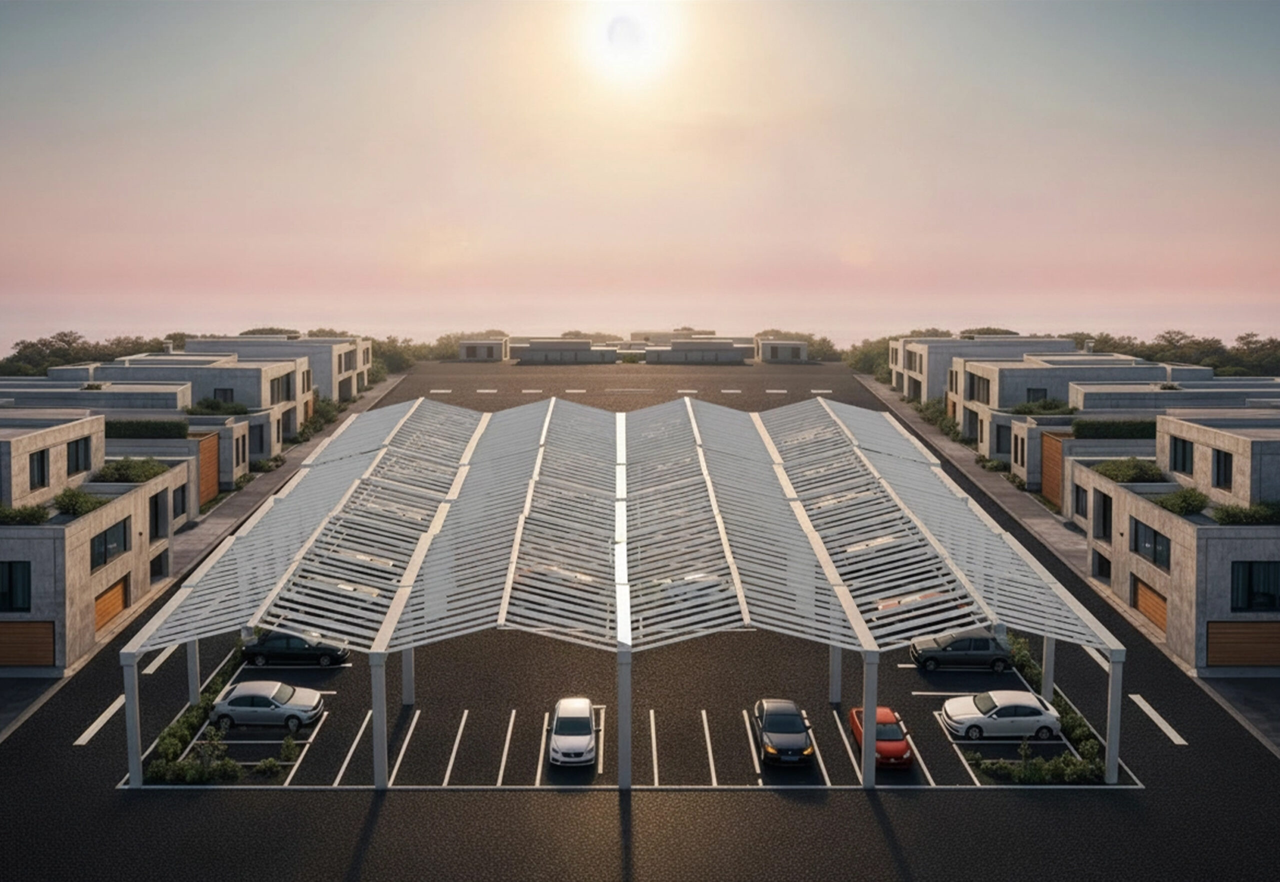 Vor allem stark versiegelte Flächen wie Parkplätze, Dachlandschaften, Gewerbeflächen und innerstädtische Plätze speichern tagsüber grosse Wärmemengen und geben diese bis in die Abendstunden wieder ab. Dadurch verschlechtert sich nicht nur das Mikroklima, sondern auch die Aufenthaltsqualität für Menschen, Nutzungen und umliegende Bebauung. Gigapergola versteht Verschattung nicht als dekorative Ergänzung, sondern als infrastrukturelle Antwort auf urbane Überhitzung. Ziel ist es, Flächen, die heute fast ausschliesslich funktional genutzt werden, klimatisch aufzuwerten und langfristig resilienter zu machen.